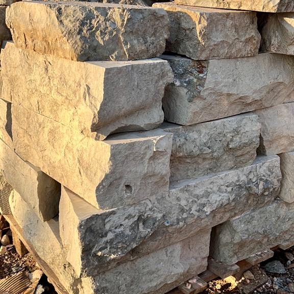 אבני תיחום אלה מסותתות בחזית, סיתות שיוצר מראה אחיד של חומת תיחום.