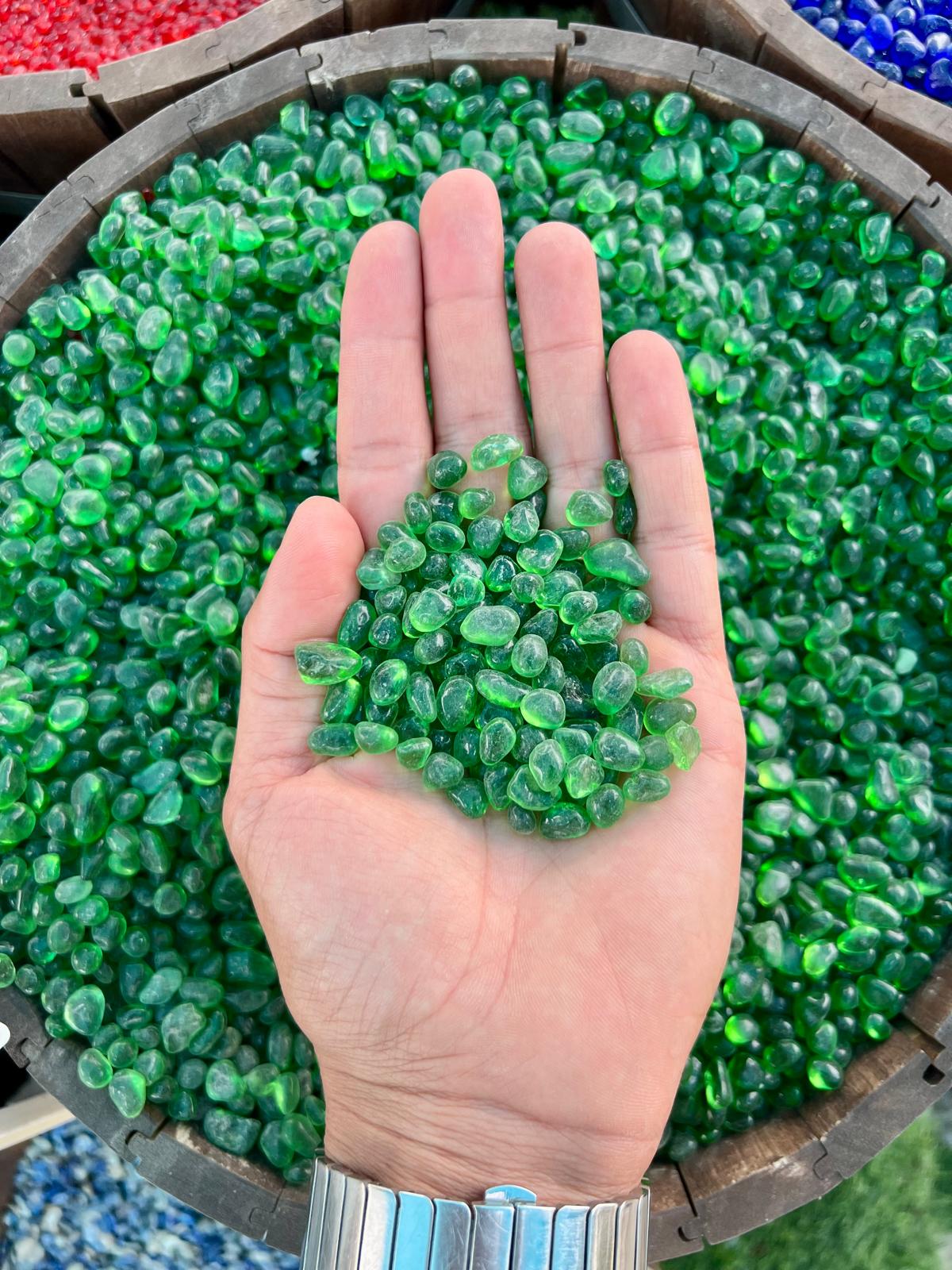 חלוקי נחל זכוכית בצבע ירוק בקבוק