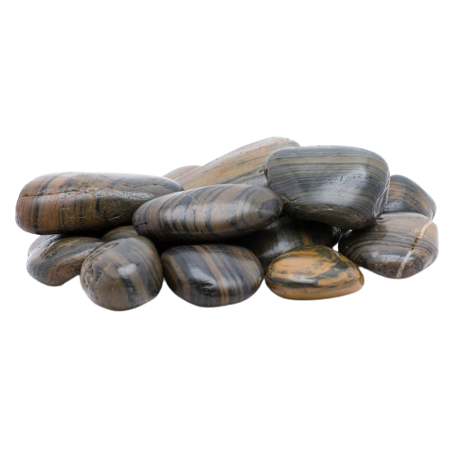 חלוקי נחל זהב מדברי, הם למעשה חלוקים חומים עם פסים שחורים.