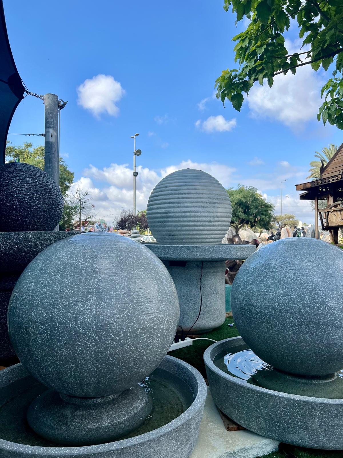 מבחר מזרקות כדור בחצר התצוגה שלנו בכפר הסלעים