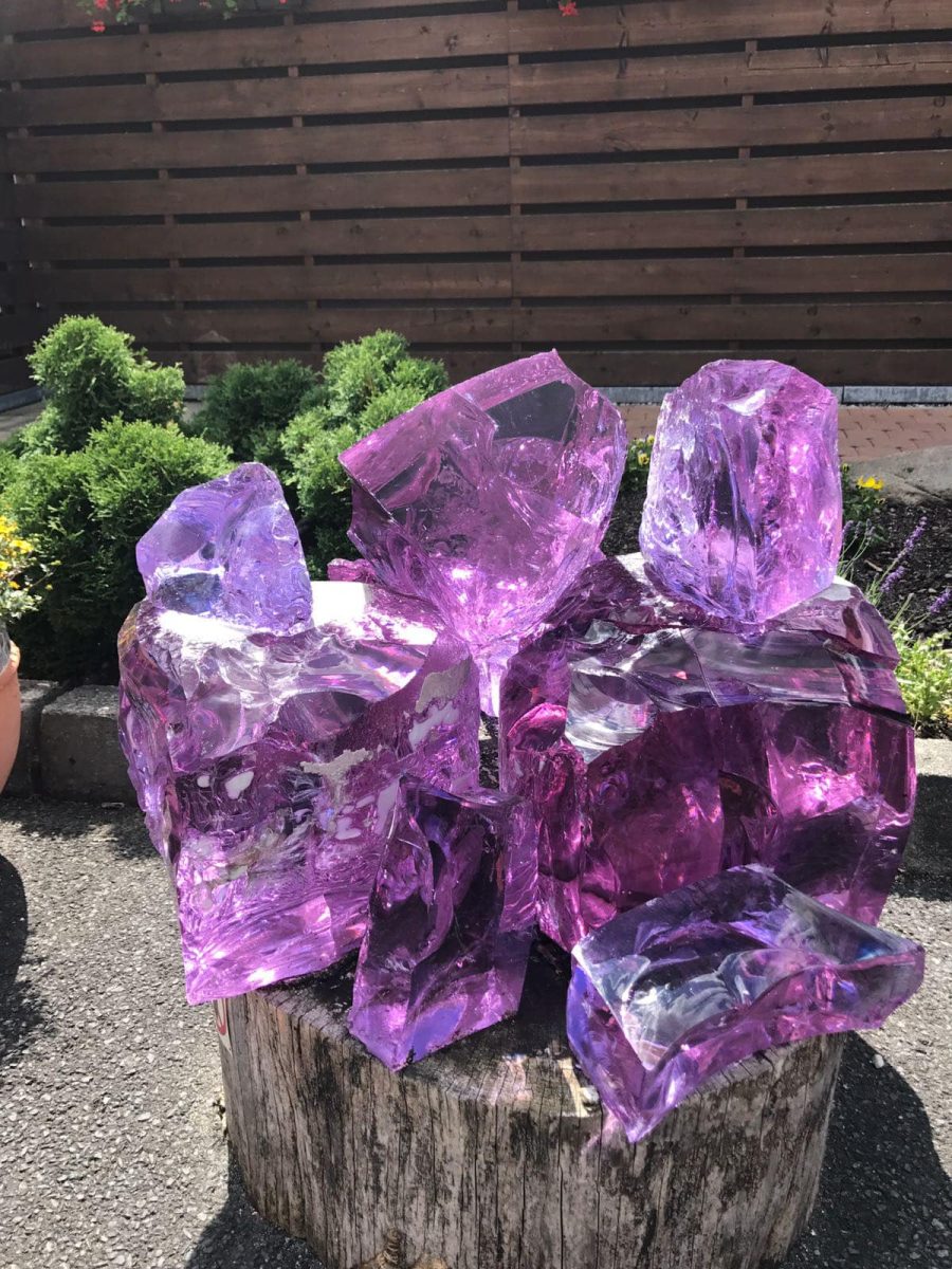 גושים אלה של זכוכית מגיעים בגדלים שונים. צורתם מזכירה צורת סלע טבעי והם שקופים במידה רבה, כך שהאור חודר דרכם ויוצר אפקט ויזואלי מרהיב.